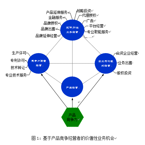 卓越産品的需求連接力和自我營銷能(néng)力,不僅可以使直接的産品經(jīng)營業務的成(chéng)功變得更加容易,還(hái)會(huì)給企業帶來更多其它的、關聯的價值性業務機會(huì),包括元素層次的競争力要素經(jīng)營、主體層次的企業爲對(duì)象的經(jīng)營,和延伸/衍生性的業務經(jīng)營的機會(huì),每一類業務又有許多具體的業務形式。基于産品競争的經(jīng)營者有更大的價值性業務空間和更多的價值性業務形式選擇,可以在産品競争力的基礎上創造和展開(kāi)諸多新價值維度的經(jīng)營,形成(chéng)一種(zhǒng)“組合型業務模式”——并可利用業務組合制造競争優勢,即同時(shí)把業務組合當成(chéng)一種(zhǒng)競争手段,見下圖1。