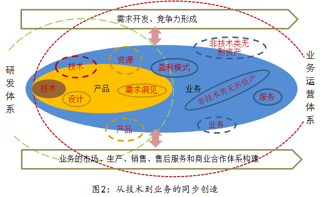 有了技術不等于有産品,有了産品不等于有業務。産品是技術的價值實現“管道(dào)”,業務是産品的價值實現“管道(dào)”,業務經(jīng)營體系(資源、結構、規則和基礎設施)又是業務的價值實現“管道(dào)”。從技術到業務經(jīng)營是一個複雜的連續創造過(guò)程和集成(chéng)設計過(guò)程。