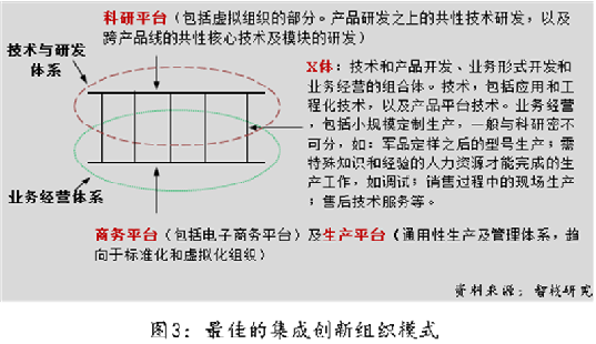 這(zhè)裡(lǐ)給出一種(zhǒng)這(zhè)樣(yàng)的集成(chéng)創新組織模式,見下圖3。其中,“X體”是一個多功能(néng)組合體,是與産品和業務直接相關的創新和創造性工作的承載主體。在産品和業務創新的不同階段,其功能(néng)及功能(néng)組合會(huì)有變化,初期以科研性功能(néng)爲主,依次是産品和業務設計功能(néng)、市場開(kāi)發(fā)和經(jīng)營體系構建功能(néng),最後(hòu)是業務經(jīng)營功能(néng)。X體的組織形式,可能(néng)是科研團隊、項目團隊、産品公司,或如蘋果公司App Store上的開(kāi)發(fā)者、高通公司專利許可下的手機品牌商等,在主體演進(jìn)過(guò)程中伴随著(zhe)人力資源的結構變化和流動,如到業務成(chéng)熟經(jīng)營階段,其中的科研人員可能(néng)會(huì)再度回流到企業的科研體系或新的創新團隊中去,3M公司就(jiù)是這(zhè)樣(yàng)。對(duì)X體而言,科研平台、商務平台、生産平台可能(néng)都(dōu)是虛拟化(包括在企業内部的模拟市場組織)組織的,或有很大的虛拟化組織的成(chéng)分。