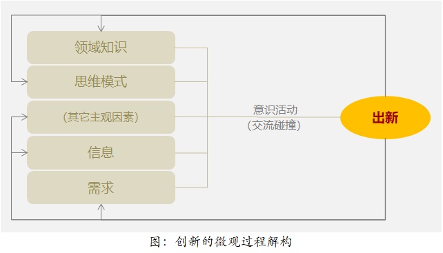創新,是一類複雜性活動,隻能(néng)交由更具複雜性的系統(人的思維意識系統)去從事(shì)。唯有無意識束縛的意識能(néng)量才可以突破意識的邊界,意識本身不可能(néng)引導意識突破自身;意識的突破總是産生于意識(間或)脫離了意識的瞬間,産生于意識能(néng)量(某種(zhǒng)程度)的自運行狀态之下,産生于意識對(duì)出現在意識之外的某些東西和信号的捕捉與感應。創新,需要用人的純粹的意識 去感知和作用于某個對(duì)象。自我是意識本身和存在形式,自我是能(néng)量的載體,自我又是意識的屏障。排除自我才能(néng)突破自我。也因此,創新常常從意外、失敗和意識能(néng)量的投射互動(如思維和觀點碰撞)中誕生。真正的創新,都(dōu)不是“刻意”的結果。創新,在微觀上,在其真實自然過(guò)程上,隻與人(群)有關,與意識能(néng)量準備有關,見上圖。企業(國(guó)家也是如此)創新能(néng)力,取決于其思維模式資源的豐厚性和員工的創新的意識能(néng)量的強弱。