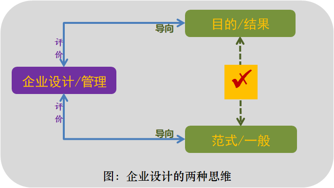 範式思維不能(néng)因應實踐的複雜性,也無意因應實踐的複雜性,他們認爲實踐者應該先進(jìn)行滿足範式要求的自我改造。範式導向(xiàng)的企業設計,必然導緻企業的管理與管理的目的之間的偏差,越是獨特性、特殊性和個性的成(chéng)分多的企業,這(zhè)種(zhǒng)偏差越大。範式思維者其實是在把手段當成(chéng)目的而不自知,他們在對(duì)範式的信奉時(shí),總是忘了問一下爲什麼(me)。